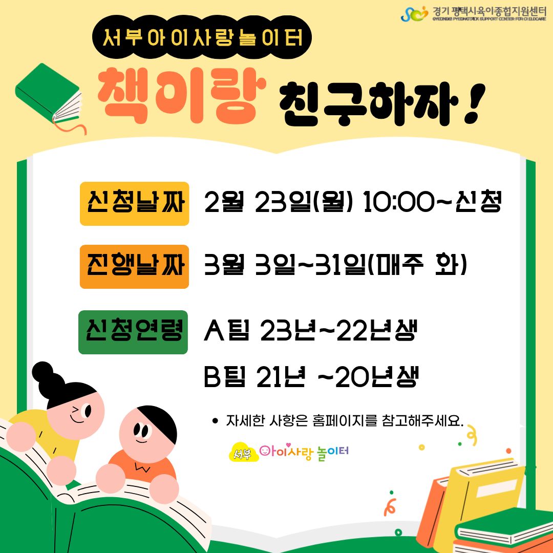 | 접수대상 | 2020년 ~ 2022년생 영유아 가정 10팀 | ||