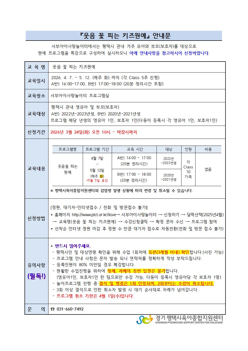 | 접수대상 | 2022년 ~ 2023년생 영유아 가정 10팀 | ||