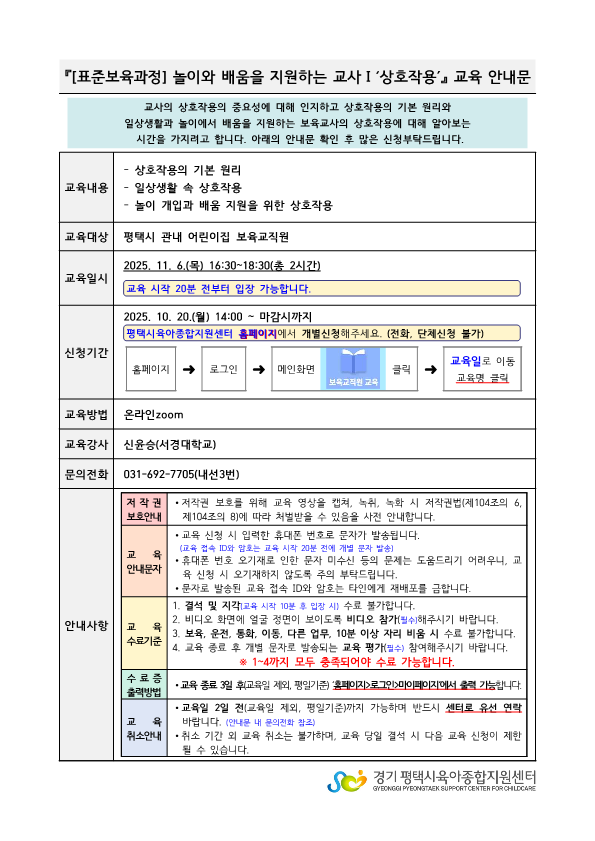 교육대상 평택시 관내 보육교직원 강사명 신윤승(서경대학교)