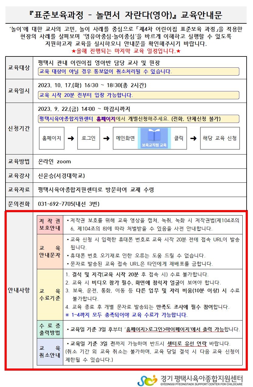 교육명 [표준보육과정] 놀면서 자란다(영아) 교육형태 온라인 zoom