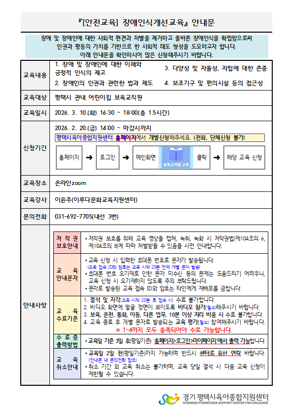 교육명 [안전교육] 장애인식개선교육 교육형태 온라인 zoom