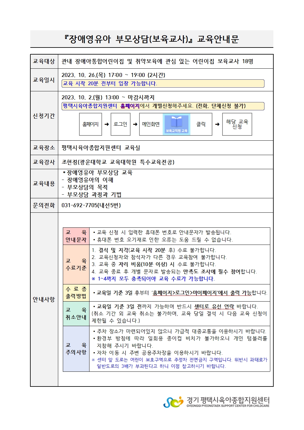 첨부파일 파일 [교육안내문(대면)] 장애영유아 부모상담교육(교사)1001.jpg
