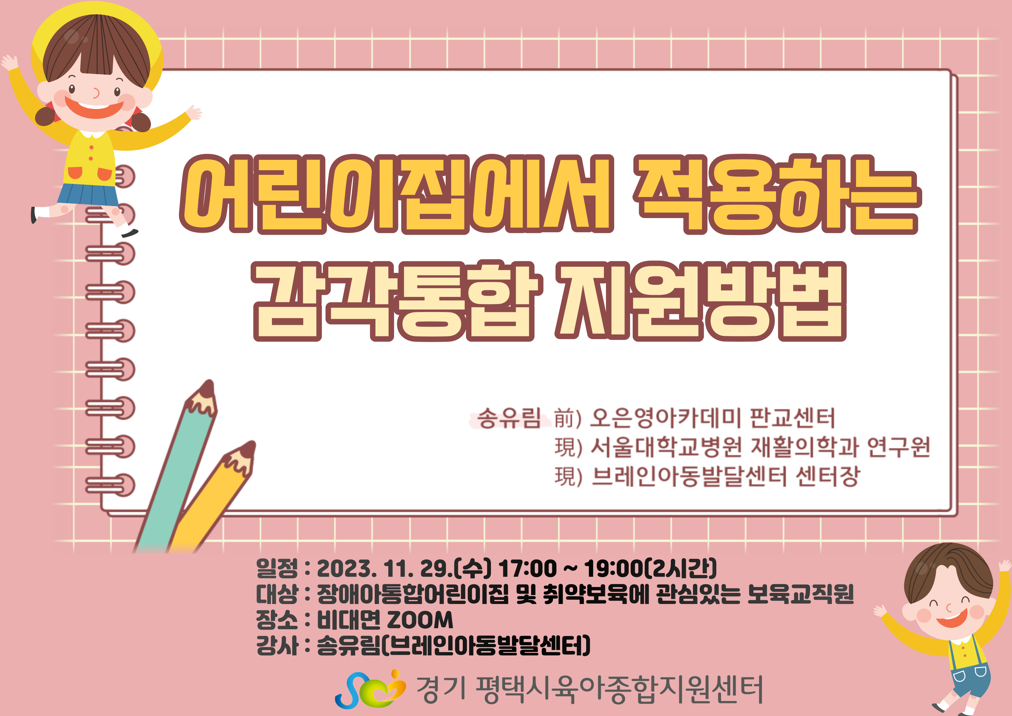 교육명 [취약보육] 어린이집에서 적용하는 감각통합 지원방법 교육형태 온라인 zoom