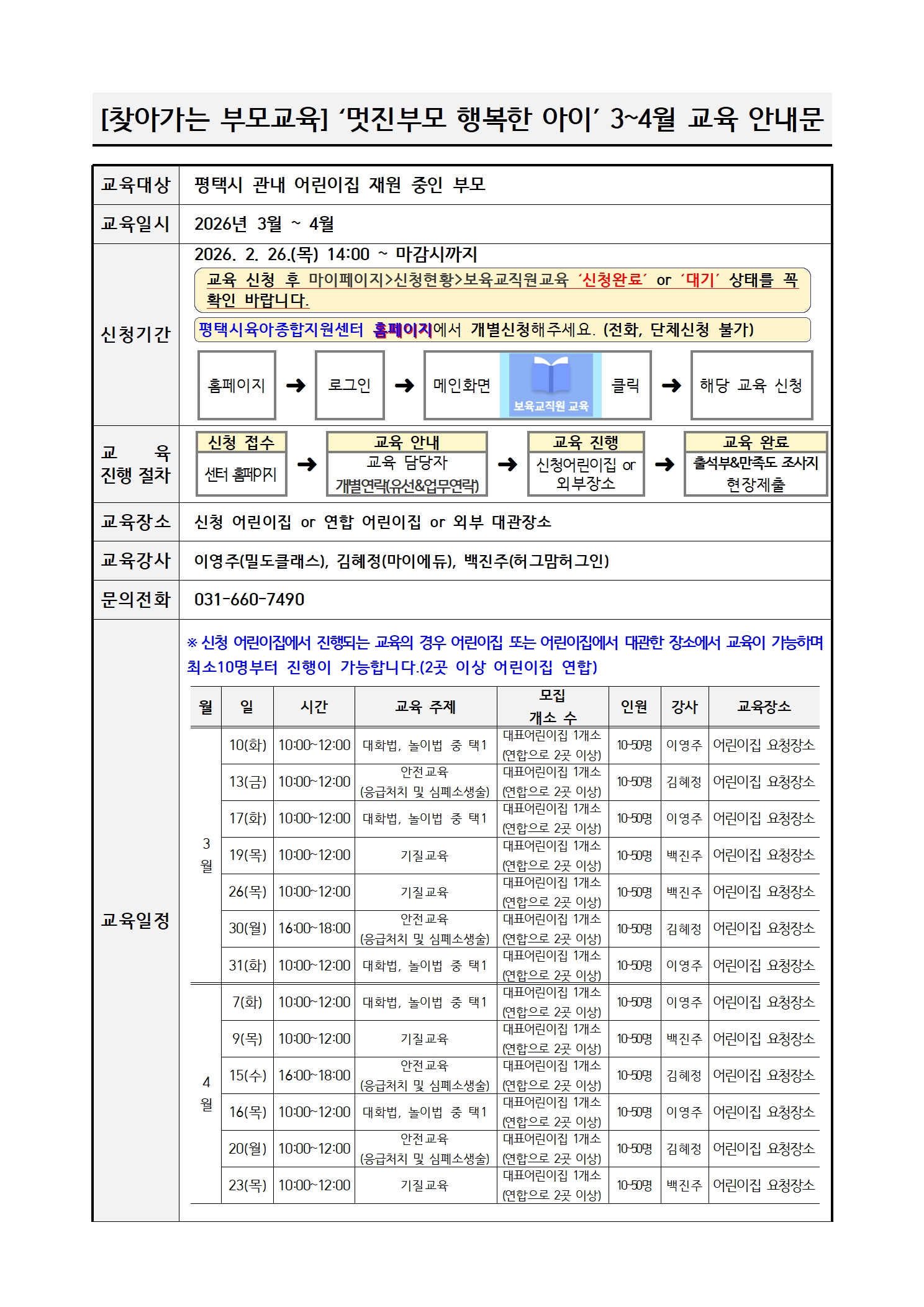 기타사항 - 진행되는 교육은 근처 어린이집과 연합하여 진행하실 수 있습니다.