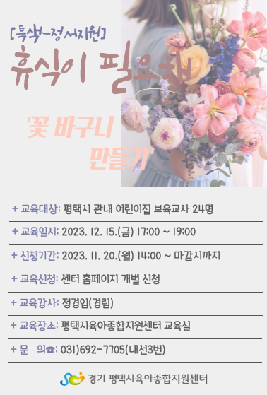 | 교육명 | [특색-정서지원] 휴식이 필요해Ⅹ '꽃바구니 만들기' | 교육형태 | 오프라인 소규모 |