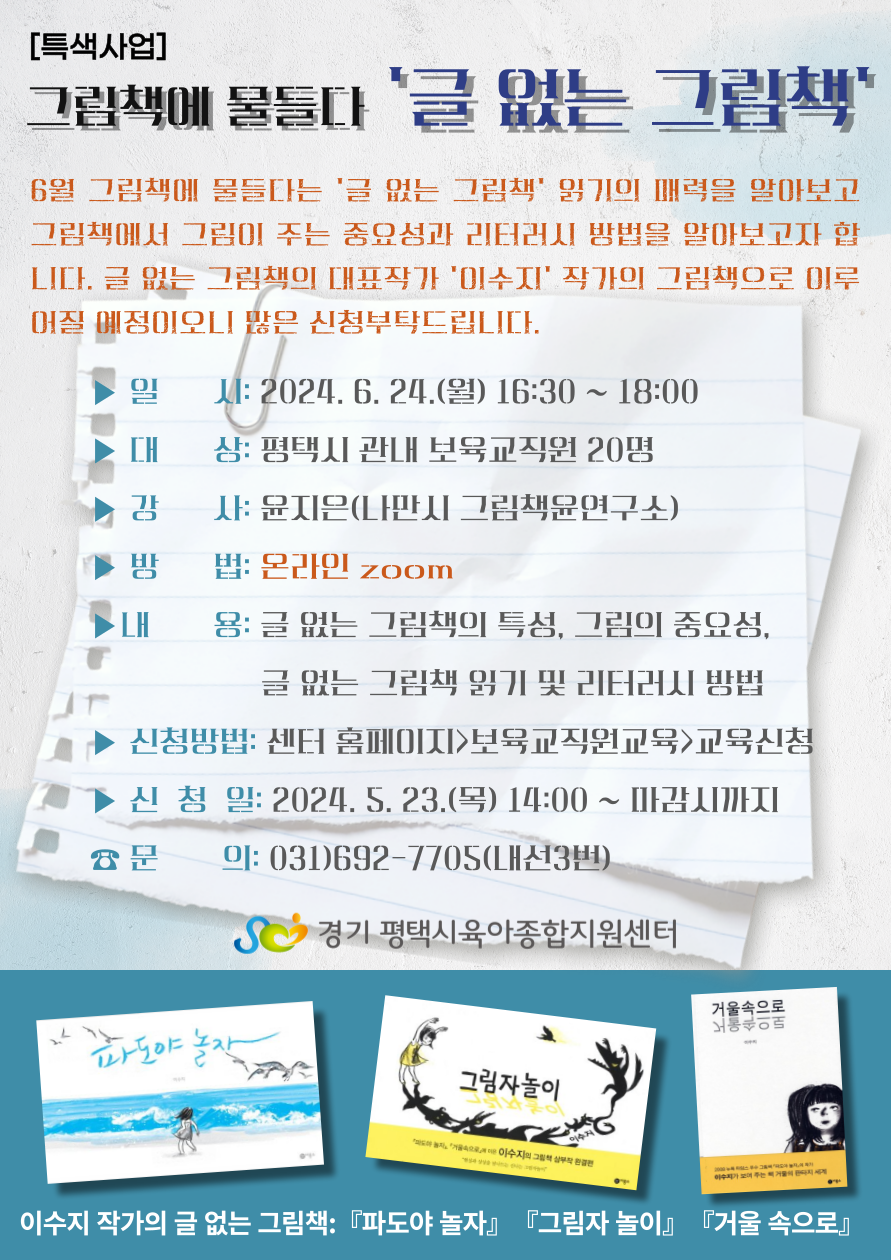 교육대상 평택시 관내 보육교직원 강사명 윤지은(나만시 그림책윤연구소)
