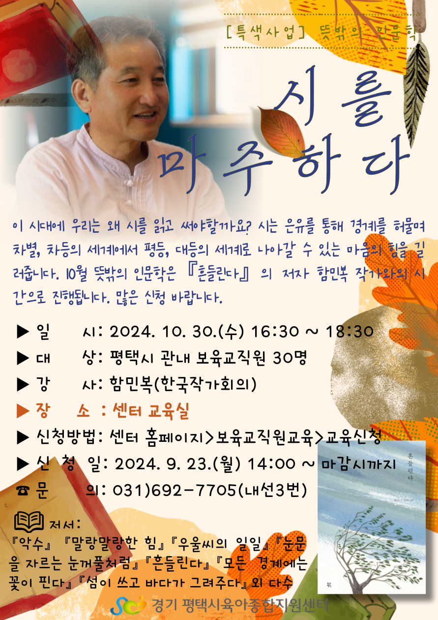 교육대상 평택시 관내 보육교직원 강사명 함민복 작가(한국작가회의)