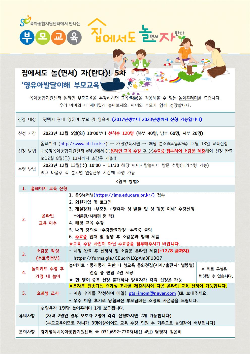 집에서도 놀(면서) 자(란다)! 5차 *온라인 부모교육을 수강하시고, 자녀와 놀이꾸러미로 더 재미있게 놀아보세요!