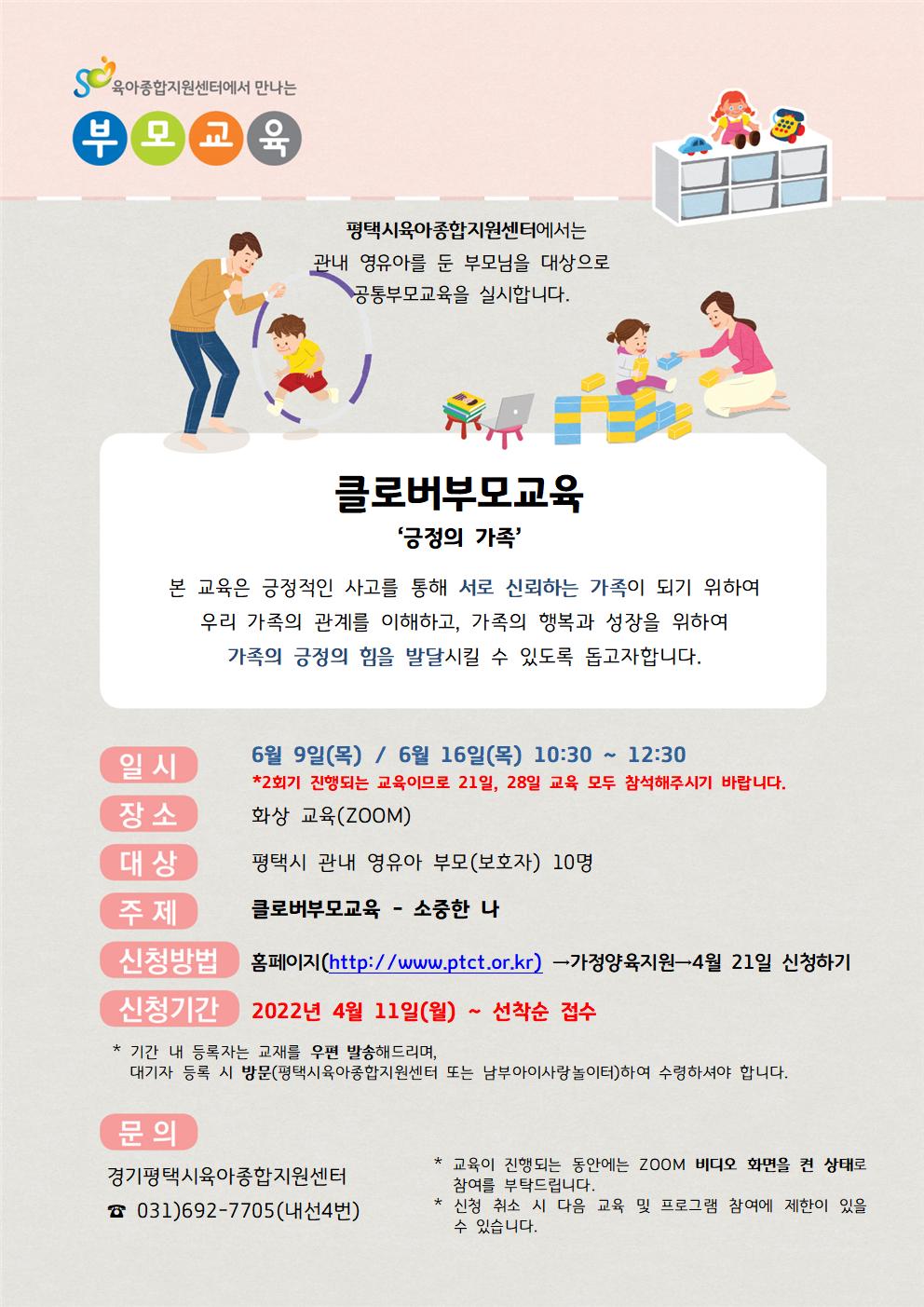 ☎문의: 평택시육아종합지원센터 부모교육 담당자(031-692-7705 내선4번)