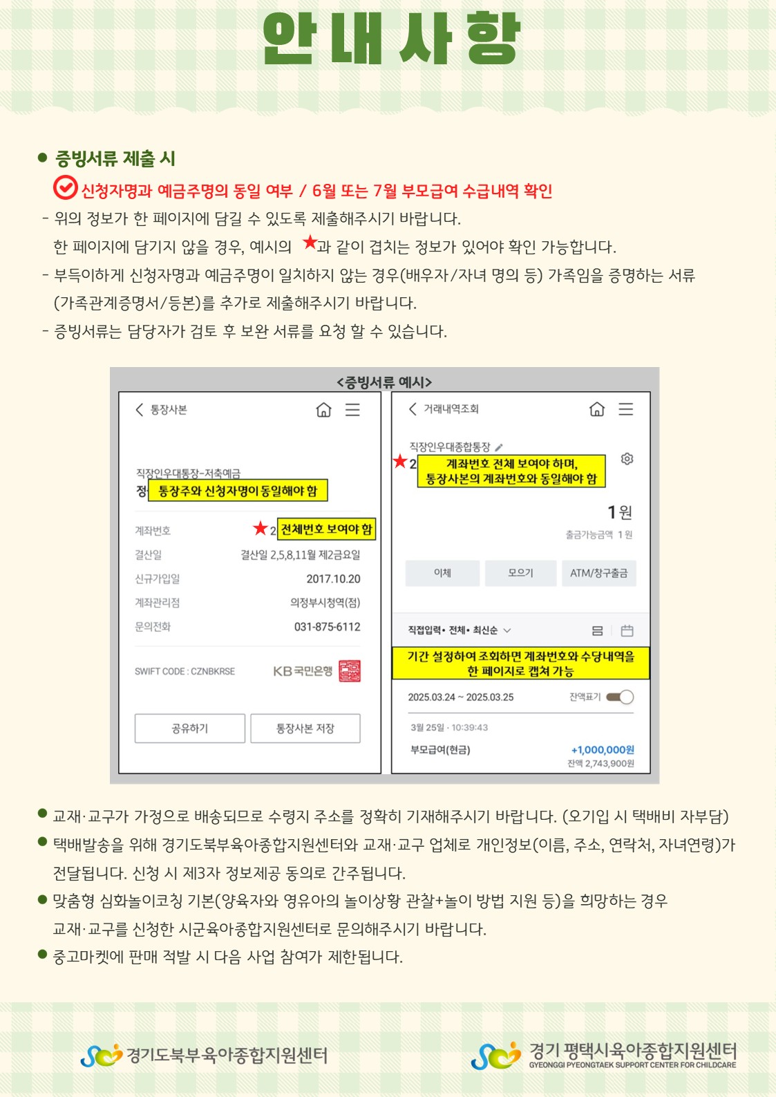 1. 부모급여 수급 거래 내역서(25년 6월 or 7월 거래내역)