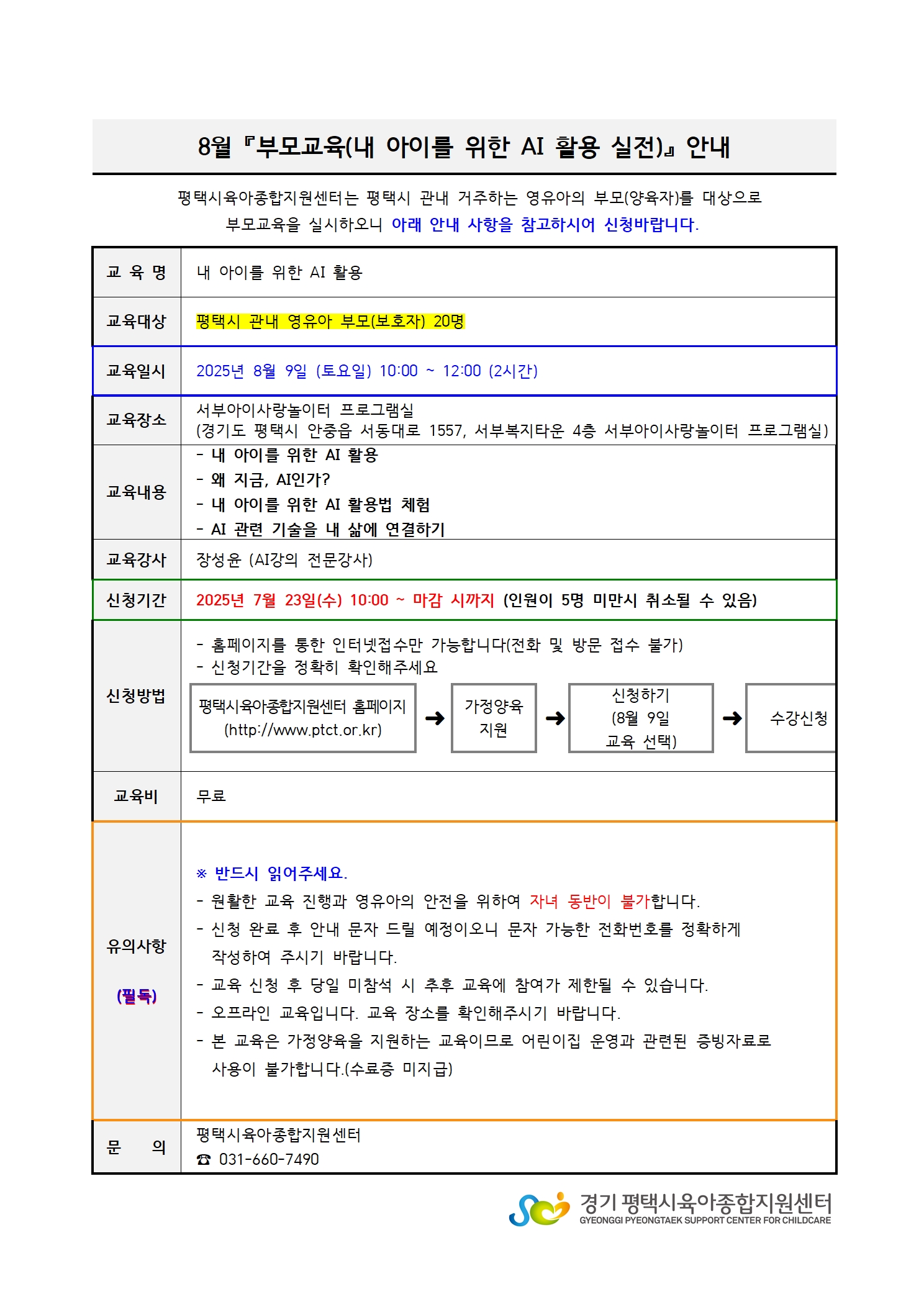 | 교육대상 | 부모 | 교육장소 | 서부아이사랑놀이터 프로그램실 |