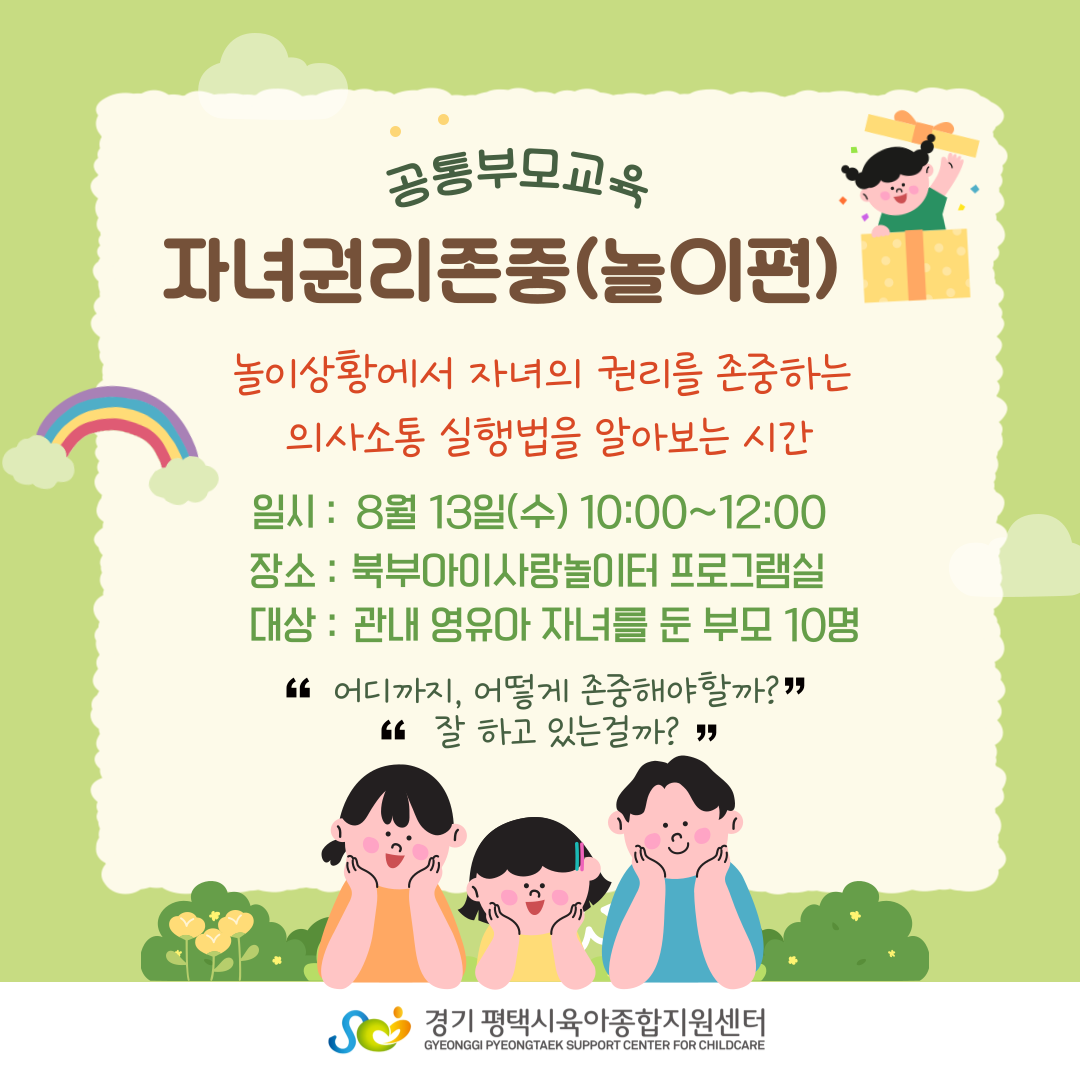 | 교육명 | 자녀권리존중 | 교육형태 | 오프라인 소규모 |