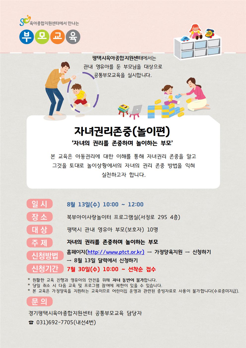 | 교육대상 | 부모 | 교육장소 | 북부아이사랑놀이터 프로그램실 |