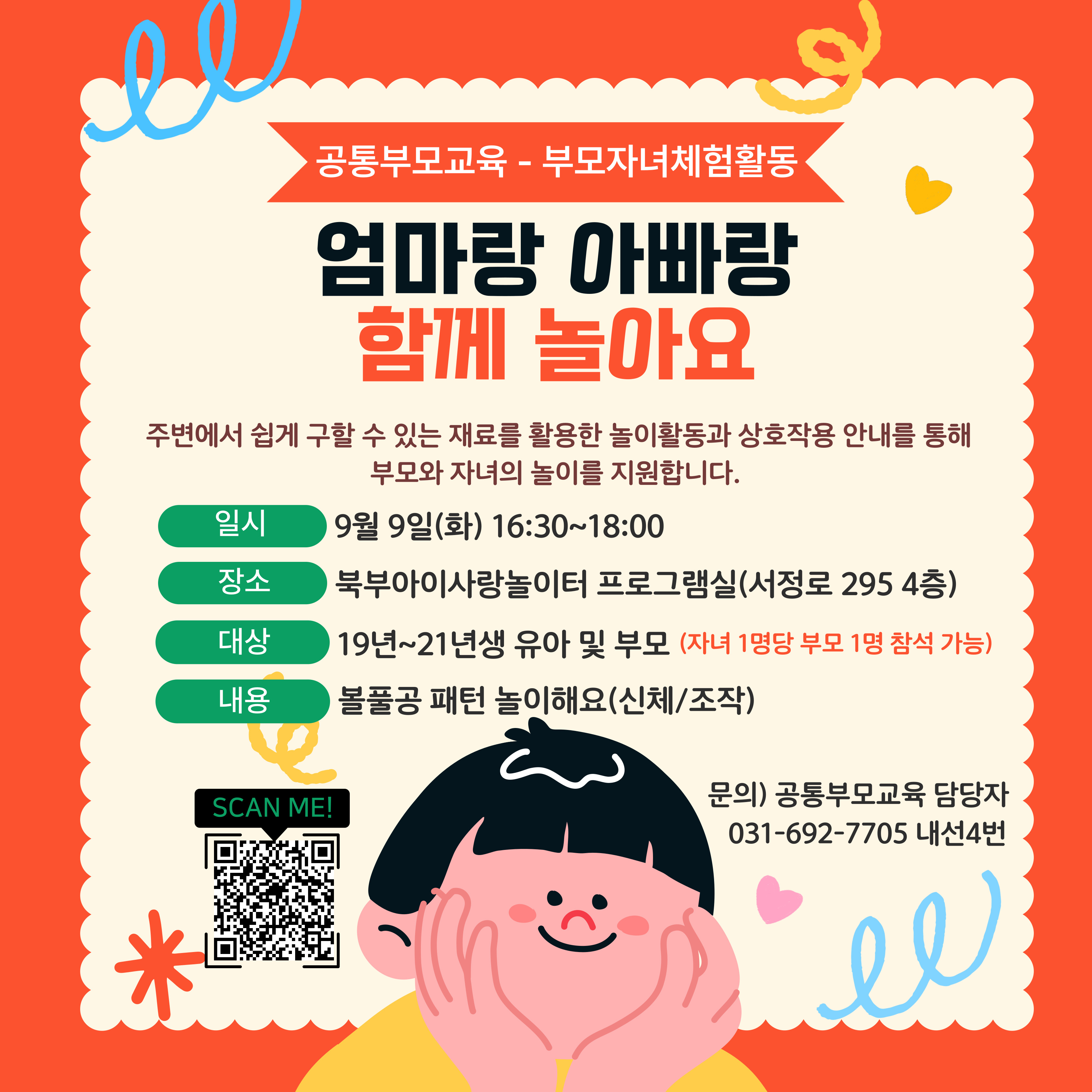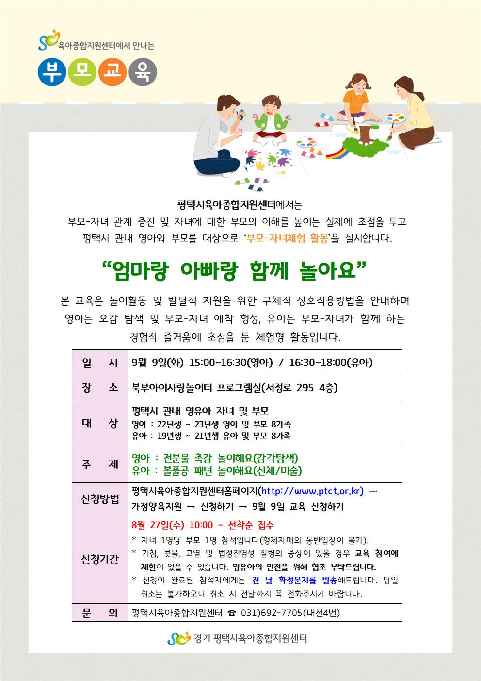 | 교육대상 | 부모 | 교육장소 | 북부아이사랑놀이터 프로그램실 |